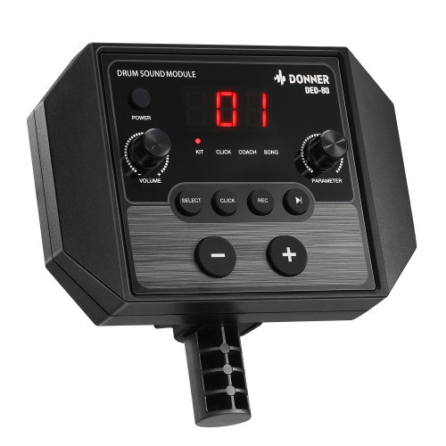 主要功能: 标准五鼓三镲套件、军鼓配置可调整网面弹性装置与Rimshot、30首多风格练习曲、可拆卸钢制鼓架、88复音数、支持镲边与镲面的双触发以及制音控制、15组预设鼓组采样、地鼓与hihat为金属踏板、120种音色、可拆卸钢制鼓架、6.5”双层网状高密度结构